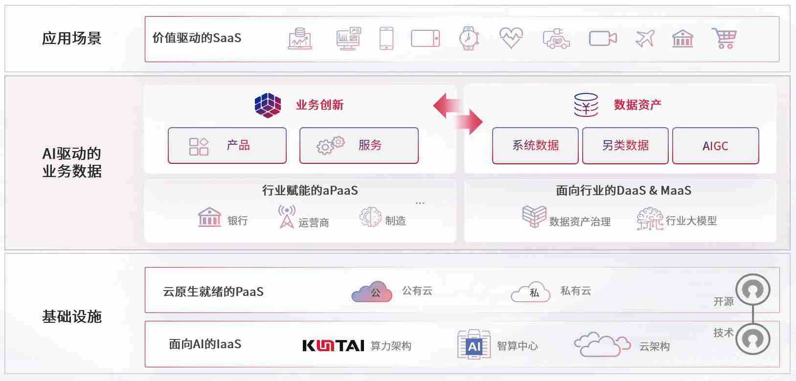 数字时代,,,围绕企业数字化转型的关键要素,,,壹号娱乐数码开创性的提出数云融合战略和技术体系框架,,,,着力在云原生、、、数字原生、、、AI原生和信创产业上架构产品和服务能力,,,,为处在不同数字化转型阶段的快消零售、、汽车、、、金融、、医疗、、、政企、、教育、、、运营商等行业客户提供泛在的敏捷IT能力和融合的数据驱动能力,,,构建跨界融合创新的数字业务场景和新业务模式,,助力企业级客户建立面向未来的核心能力和竞争优势,,全面推动社会的数字化、、、智能化转型升级。。